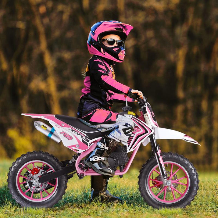 Answer 3: Yes, the lightweight design and 49cc 2-Stroke engine make it manageable for younger riders while still delivering a thrilling ride. It promotes confidence and independence as kids master their riding skills, making it perfect for beginners.